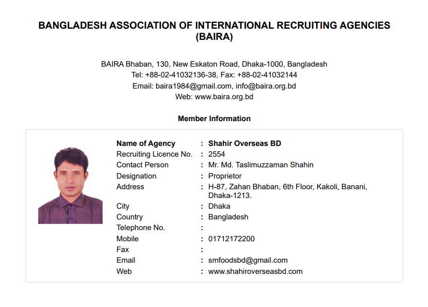 Certified by the Bangladesh Association of International Recruiting Agencies (BAIRA), ensuring compliance with industry standards and regulations